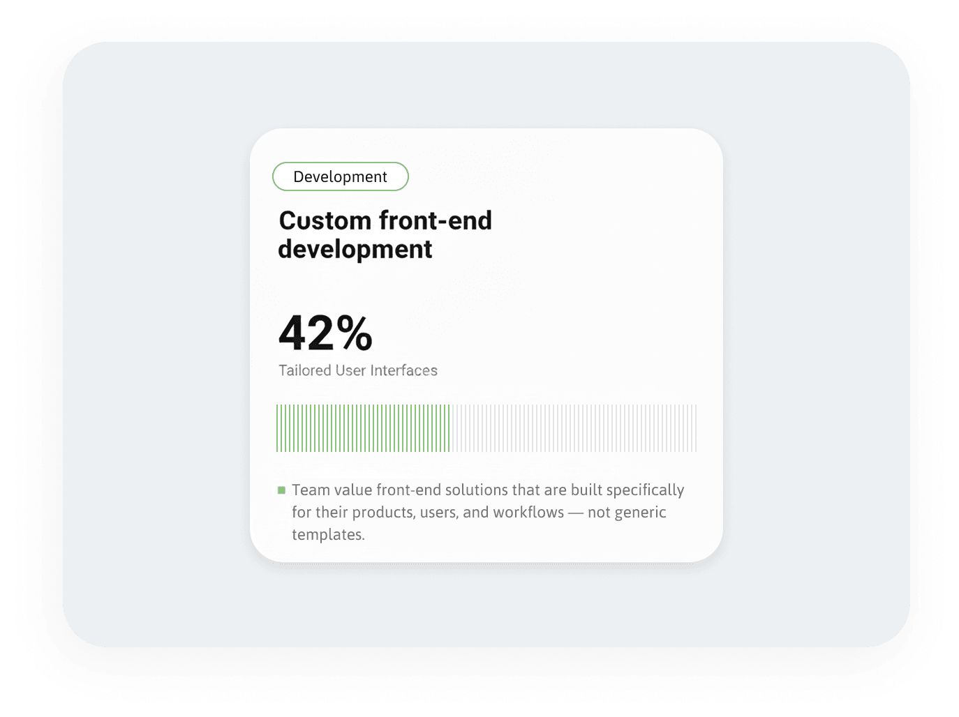 is reduced future feature delivery time while minimizing technical debt. We design scalable frontend architecture using modular components and proven patterns.